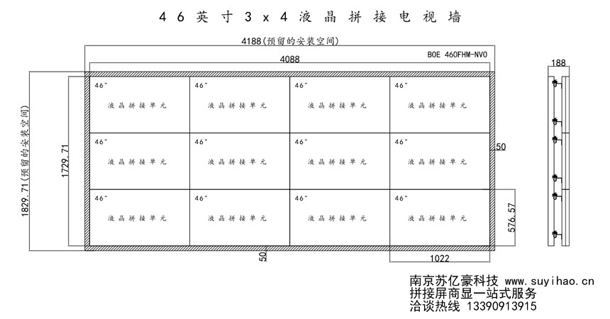 泰兴某派出所3行4列12块46寸拼接屏 加一台高清矩阵 满足16路高清信号的切换 选用京东方液晶拼接面板syhnvo
