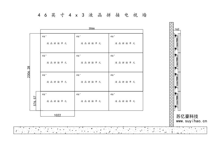 南京枫*花园4行3列12块46寸拼接屏 壁挂安装 满足小区监控高清信号的切换 选用三星液晶拼接面板syh460hn11